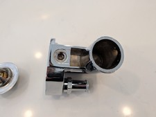 Mr Gasket 9713 Chrome Water Neck thermostat housing, Fits 79-97 Ford 5.0L / 5.8L 302 / 351W V8 also includes a 160F Motorad high flow thermostat! Fits: 1979-1997 Ford 5.0/5.8L V8s Chrome Plated For Great Looks Water Neck Style: 90 degree Material: Diecast Finish: Chrome Coating Type: Plated Sealing Style: Gasket Precision die cast, these water necks or thermostat housings are first polished to a high luster, then chrome plated.