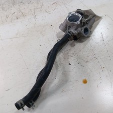 Removed from running engine, unknown mileage. The one metal hard line the nipple cracked off of it.The housing seems to be missing the temp sensor and Coolant pipe, but thermostat, coolant neck, and hoses are included.