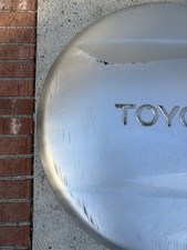 The product is a genuine OEM rear spare tire wheel hard cover for a 2001-2005 Toyota Rav4. This cover is designed specifically for the rear placement on the vehicle (Damaged see pictures)