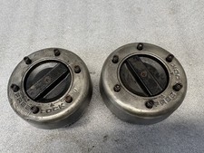 Good used set of locking hubs for all Dana 60 30 spline outer shafts. These are typical of most all Dana 60 / Dana 50HD (F250) Chevy GM K30 Dodge W250 W350 Ford F350 front axles. Internal style, fits all Dana 60 and 50 axles with 4" diameter lockouts. Parts washer cleaned and degreased. Actual parts pictured of course. Chrome is a little dull, cosmetic defects as shown - scratches, gouges etc Priced accordingly.