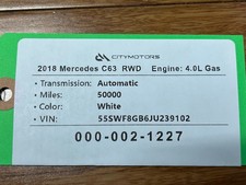 Vin: 55SWF8GB6JU239102 c63. Year Make Model Body & Trim Engine & Transmission. The mileage and information about the donor's car can be found on the label in the pictures.