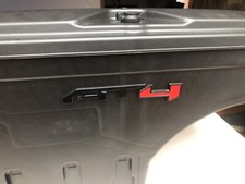Factory bed storage pocket cover from a 2007 Tacoma with 6ft bed. This is the shorter cover for the trucks with the inverter plug in the bed. The cover is in good condition with one deep gouge along the bottom edge. Both tables on the back are intact and the knob moves as it should.