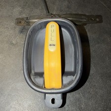 The product is an original genuine Hyundai trunk emergency pull specifically designed for a 2003 Hyundai Accent. It is a vintage part made of plastic and steel, featuring a painted black finish. This rear placement part is not universal and was manufactured in South Korea. It is not a performance part, but a necessary accessory for emergency situations.