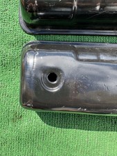 Here is a used pair of valve covers that we recently acquired. These came from a 57 Ford Fairlane but I believe they are called Y block valve covers so they should fit several years. They were painted gloss black many years ago and that paint has several scratches and some light peeling in it so it isn't perfect. Both of them have several dents in them and you can see those in pictures 8 and in pictures 15 and 16. They would still be plenty good enough for a daily or weekend driver type of car. Winning bidder pays only $12.00 shipping anywhere in the lower 48 United States. Good luck!!