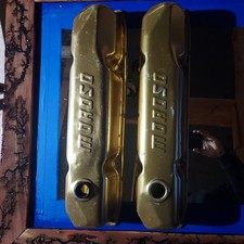 The Moroso Anodized Gold Aluminum Valve Covers are a vintage performance part designed for V8 Dodge Chrysler engines, specifically the 440, 383, 400, and 426. These valve cover sets are made of aluminum and feature a stylish anodized gold finish. Manufactured in the United States by Moroso, these valve covers come with a breather included and are known for their quality and performance. Perfect for enthusiasts looking to upgrade their engine with a classic and eye-catching component.
