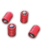 The Tire Steam Valve Cap with FORD logo is a set of 4 red aluminum valve stem caps designed for clockwise threaded valves. These leak-tested caps are rust-resistant and easy to install without the need for any tools. With a universal fitment, they can be placed on the left or right side of the vehicle. Made in China, this durable product ensures a secure seal to keep your tires inflated to the recommended pressure for optimal performance and safety on the road.