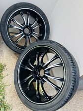 The 24s Sporty set of four black and silver dual-tone multi-spoke wheels with tires by VCT Wheels is a stylish and durable choice for car enthusiasts. These bolt-on wheels are designed for easy installation and feature a leak-tested, rust-resistant coating for long-lasting performance. With a sleek metal construction and a TÜV Rheinland certification, these wheels are both practical and high-quality. Whether you're looking to upgrade your front, rear, left, or right wheels, this set offers a sleek and sporty option that will enhance the look of your vehicle.