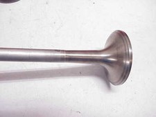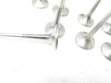 Here is a used set of 8 DEL WEST titanium exhaust valves. They are 7mm stem, 1.580 head and are about 5.690 long. They weigh about 59 grams. They are the bead groove type. Nice set of 8 exhaust valves.