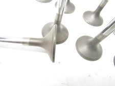 Here is a used set of 8 stainless steel ehaust valves. They are 11/32 stem, 1.500 head and are about 4.985 long. They are the square groove type. Great shape.