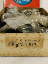 Estate find, 1950’s or earlier set of 8 Intake Valves part Number VI-1667 R/O VI-1743 hand written???. NOS 6 Wrapped in original plastic, 2 open parts and bags marked 1667. As found, box has storage age.
