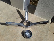 The product is a horn bezel and horn designed for a nineteen sixty three Mercury Monterey. The Mercury brand indicates that these parts are specifically manufactured for this particular make of vehicle. The horn bezel is a decorative trim piece that surrounds the horn, while the horn itself is an essential component for producing sound signals. These parts are likely sought after by owners or enthusiasts of vintage Mercury Monterey cars to maintain the authenticity and functionality of their vehicles.