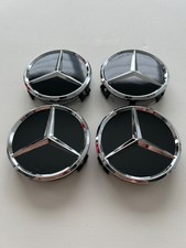 Set of four Mercedes-Benz wheel center caps in a 75 mm size with the classic Star and Laurel design. Durable ABS snap-in inserts that refresh the look of your wheels and replace worn or missing caps.