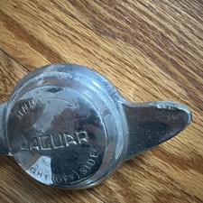 The product is a vintage OEM Jaguar wheel spinner knock off made of chromed brass, specifically designed for the right side of the vehicle. It features a Jaguar emblem and is a classic part originating from the United Kingdom. This unique and authentic accessory adds a touch of luxury and nostalgia to any Jaguar car. Whether you are a collector or looking to restore a vintage Jaguar, this right off side wheel spinner knock off is a rare and valuable find.