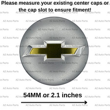 MOBILE DESCRIPTION Set of four 2.25 in Chevy wheel center caps. Light cosmetic wear, clips are solid and hold tight. Fits Cobalt 2005–2009, Cruze 2011, Equinox 2007–2009, HHR 2006–2010, Impala 2006–2010, Impala Limited 2014–2016, Malibu 2006–2012, Monte Carlo 2006–2007. Easy snap-in install. .