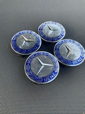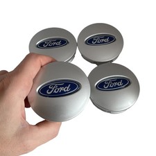 Set of 4 blue on matte silver wheel center caps. Snap-in fit, no tools needed. Made for listed Ford wheel sizes only. Does not fit 15 inch wheels. Measure your wheel center opening before purchase. Condition reflects the actual items listed. .