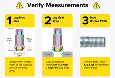 These Lug Nuts can fit vehicles with studs that are the following thread size/pitch: 12x1.25 | 12mmx1.25 | M12x1.25 | 12x1.25mm | UNF RH. Make sure your wheels have Cone Seat lug holes. Please click into this section to view important fitment information and additional details about the item.