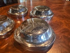 Set of four Jaguar e-type XKE spinner/knockoffs, two left-hand and two right-hand. Great set with bright chrome. Please email with questions and thank you for reviewing this listing.