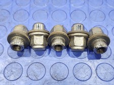 Nice set of used original lug nut caps used on many GM vehicles with no cracks. On some models they are exposed and on some models are used to hold the hubcaps on.