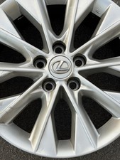 OEM Lexus ES300h 17” Factory Alloy Wheel (2013–2015). Used OEM wheel with visible signs of wear, including scratches, curb rash, faded paint, and paint bubbling as shown in the photos. The wheel is structurally sound with no cracks or bends.
