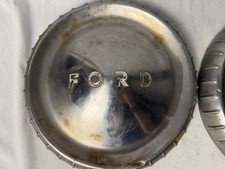 The product is a set of two vintage 1960's Ford Dog Dish Hub Caps with a 9 5/8" outer diameter. These hub caps are designed for classic cars and are a perfect addition for Rat Rod enthusiasts looking to add a touch of nostalgia to their vehicle. Made by Ford, these hub caps are authentic vintage parts that will surely enhance the look of any classic car.